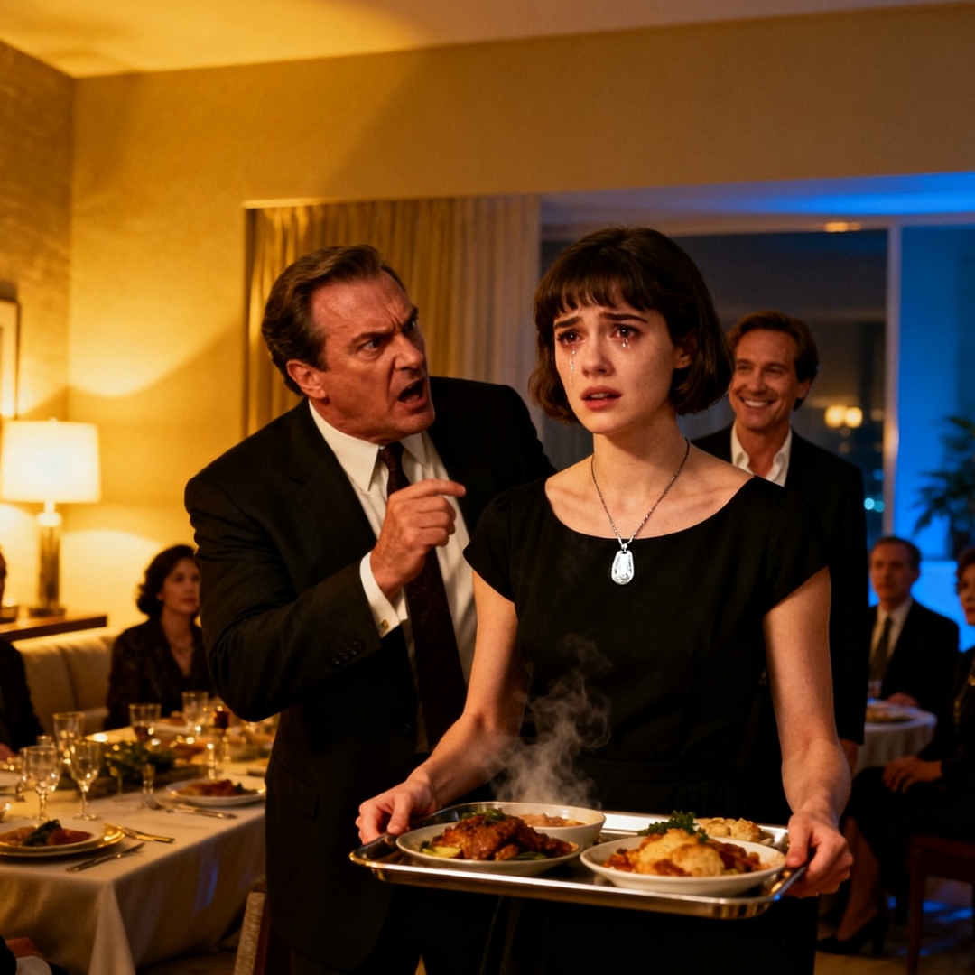 The chain had slipped out from under my dress while I poured wine. It glinted under the chandelier—small, old, the kind of thing that didn’t belong in a room full of expensive plates.