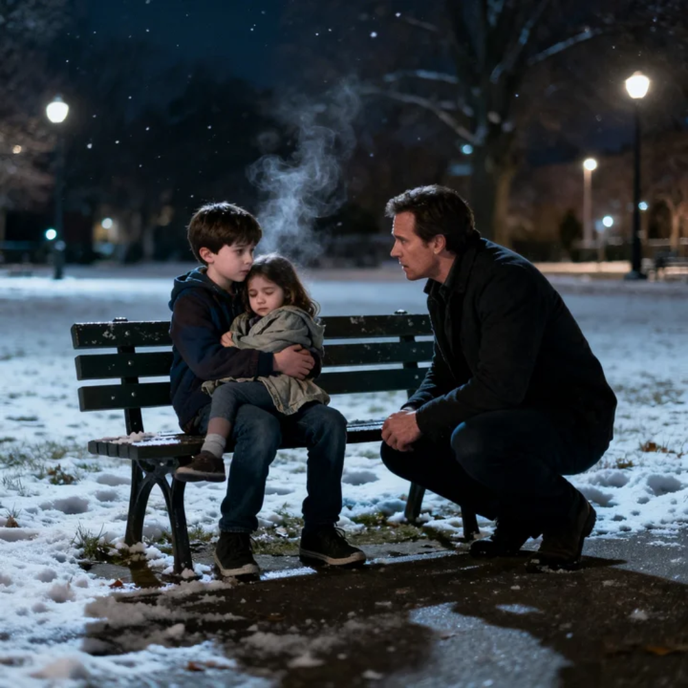 The words were small, nearly erased by the wind. He turned and saw a child standing beside a snow-covered bench beneath one of the park lamps.