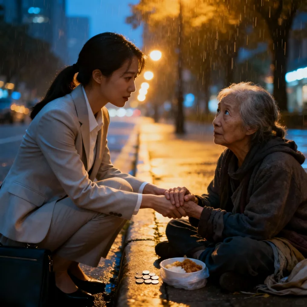 She turned her face toward me. “But sometimes it’s the small things. A hand on a wrist. A five-dollar bill on cardboard. A moment you decide to stay human.”