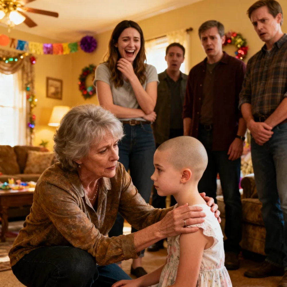 Because underneath that cap… my six-year-old granddaughter’s beautiful golden hair was gone.