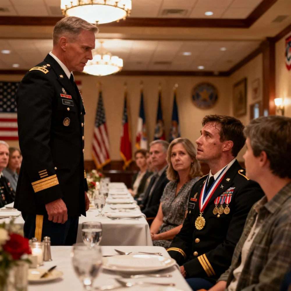 Veterans with service ribbons sat near the front, families behind them, guests along the walls. Todd—undecorated except for my medal—sat in a position of implied honor at the head table. Wallace was beside him now, one hand on his son’s shoulder, performing the role of proud patriarch for whoever would watch.