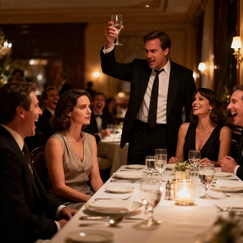Not surprised laughter. Not awkward laughter. The kind of laughter that lands fast because it’s been loaded and waiting. People clinked glasses. Someone cheered as if he’d just announced a promotion. A few women smiled with the delicate relief of people grateful the humiliation wasn’t theirs. Across from him, one of his partners shook his head with theatrical disbelief, like this was a daring joke at an awards dinner.