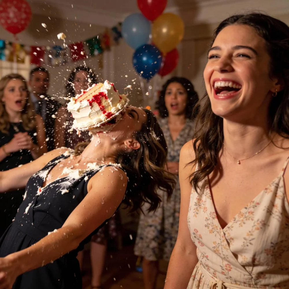 And Rowan—my sister—towering over me with both hands still out, palms smeared with icing, her grin bright and sharp in a way that wasn’t playful at all.
