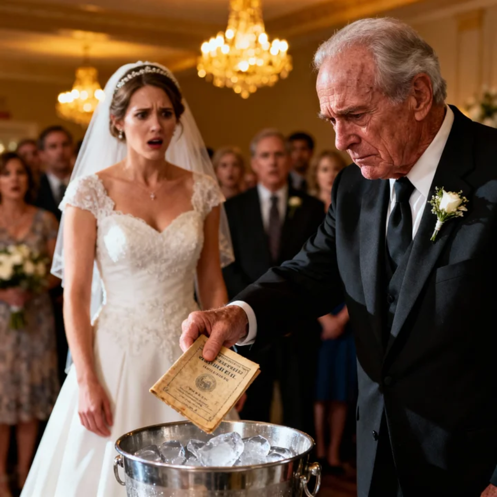 I walked to the bucket, plunged my bare hand into the ice water, and fished for the passbook like it was a heartbeat I refused to lose. The cold bit instantly, brutal enough to sting my bones. Champagne soaked my sleeve, then my bodice. The ivory fabric of my wedding dress—carefully chosen, carefully fitted—darkened and clung to my skin.