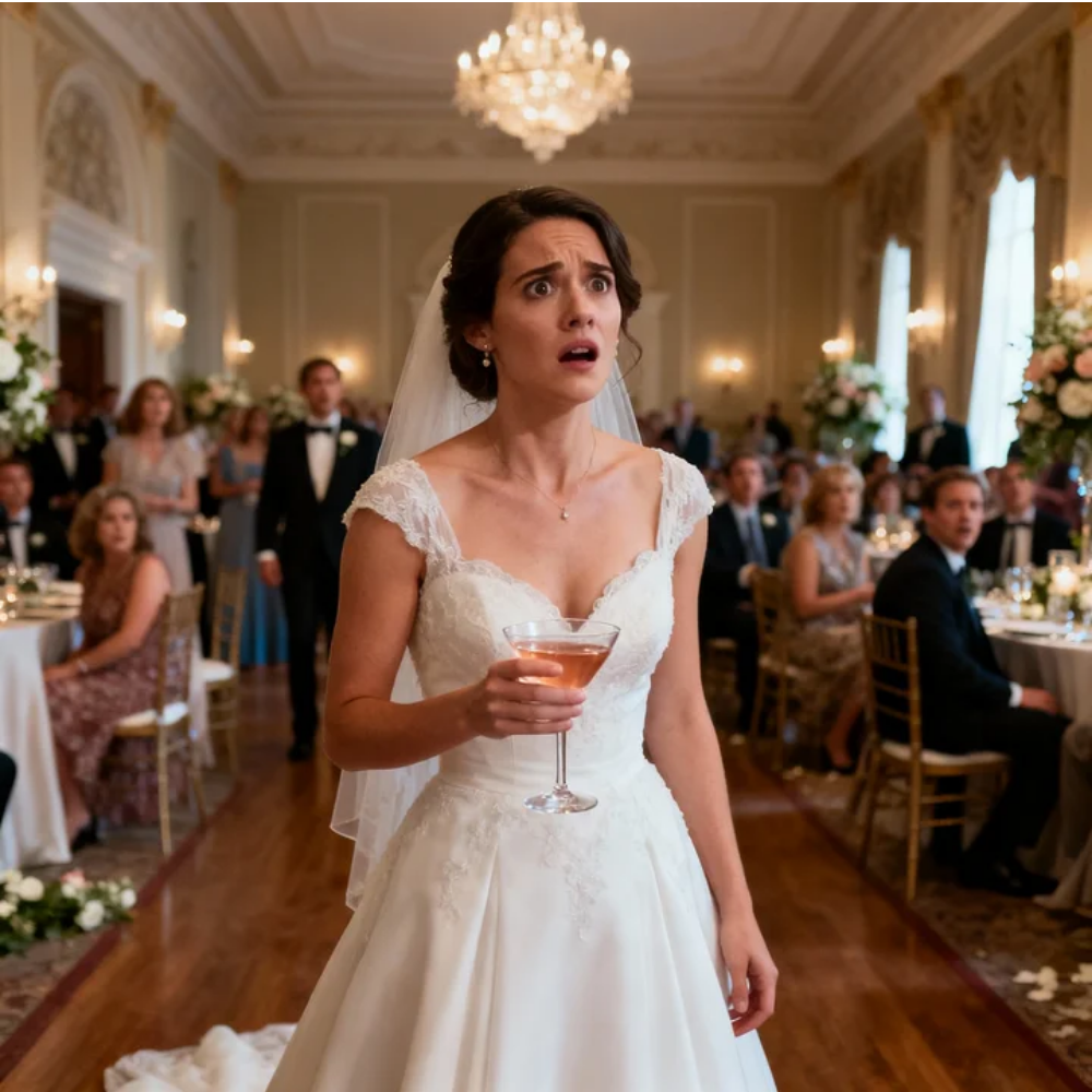I was at the bar because my veil had shifted. Lace can be temperamental; it has its own moods, its own ideas about gravity. I stepped away from the head table, smiled at a group of Ethan’s colleagues, and went toward the copper-backed bar where the bartenders were pouring drinks with perfect wrists. The copper was behind the liquor shelves, reflecting everything in a warped, golden way. I leaned forward, pretending to adjust the comb at the back of my hair, using that polished metal like a mirror.