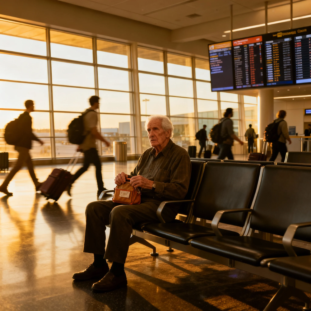 My father led Grandpa to a row of seats in the quietest corner of the terminal, near a frosted window looking out at the tarmac. Grandpa sat obediently, still holding the photo of Grandma like a passport to the past.