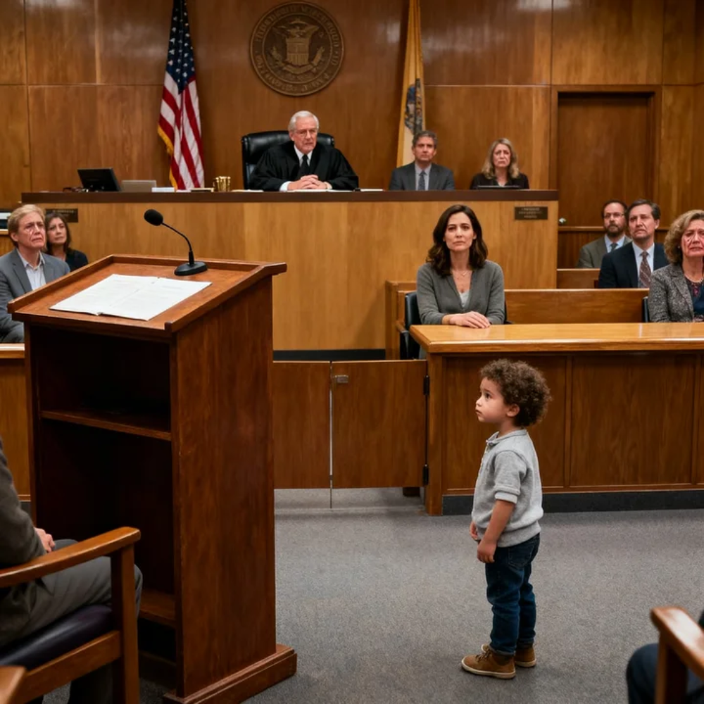 He was eight years old, too small for the witness chair without help, wearing his navy school sweater and gray slacks because my mother had brought him straight from school after lunch, and when he walked toward the stand, the whole room shifted.