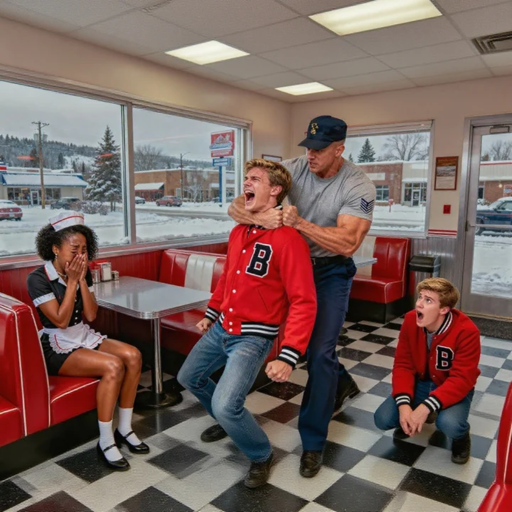 In three silent strides, Darius crossed the diner. Ethan turned, ready to spit another threat—but he never got the chance. Darius moved with precision, not rage: a practiced grip, a twist of leverage, and Ethan’s body met the tile floor with a thud that shook the salt shakers.