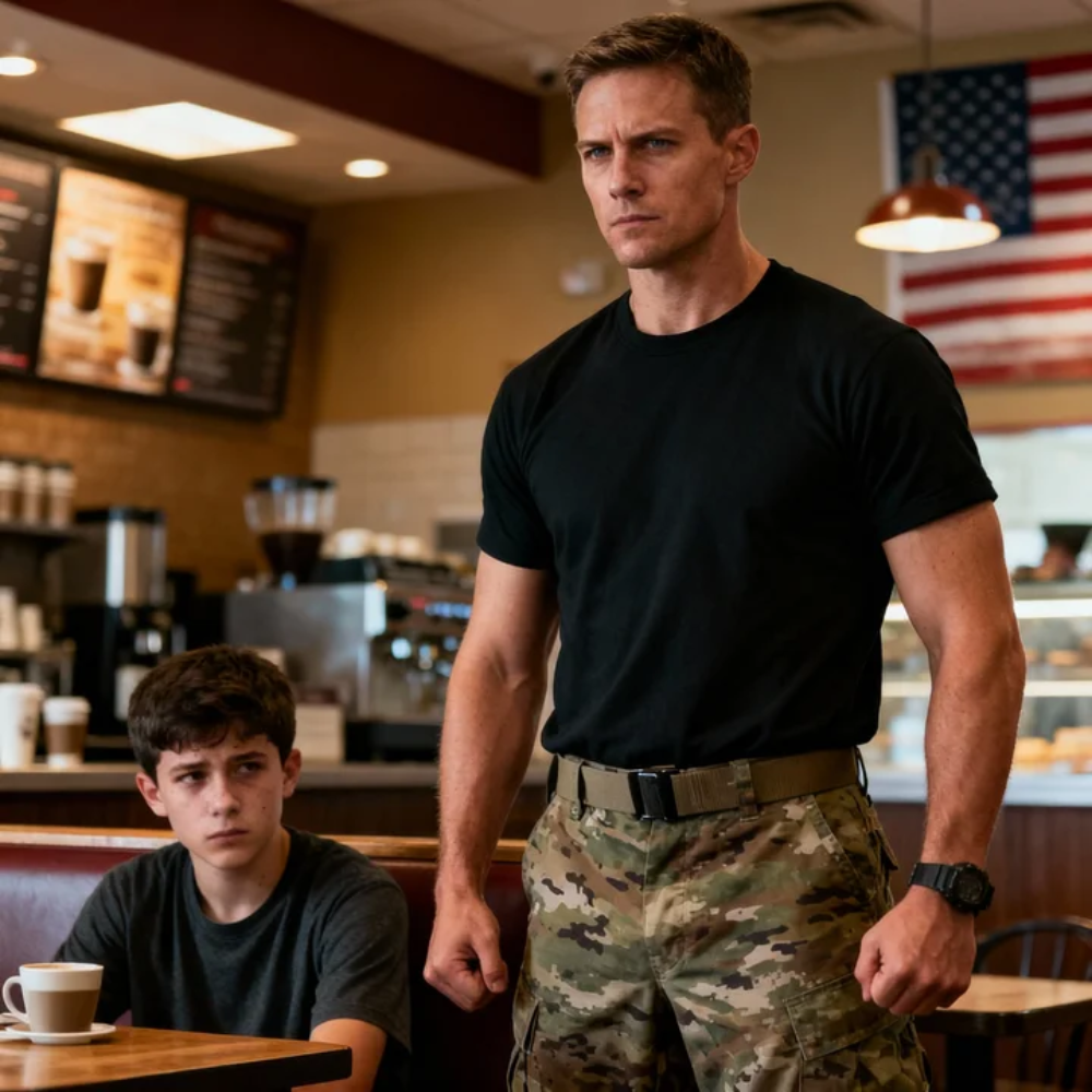 It snapped through the warm, sleepy café like a glass plate hitting tile, sharp enough to make every spoon pause mid-stir and every mouth stop mid-sentence. For a heartbeat, the whole room forgot how to breathe.