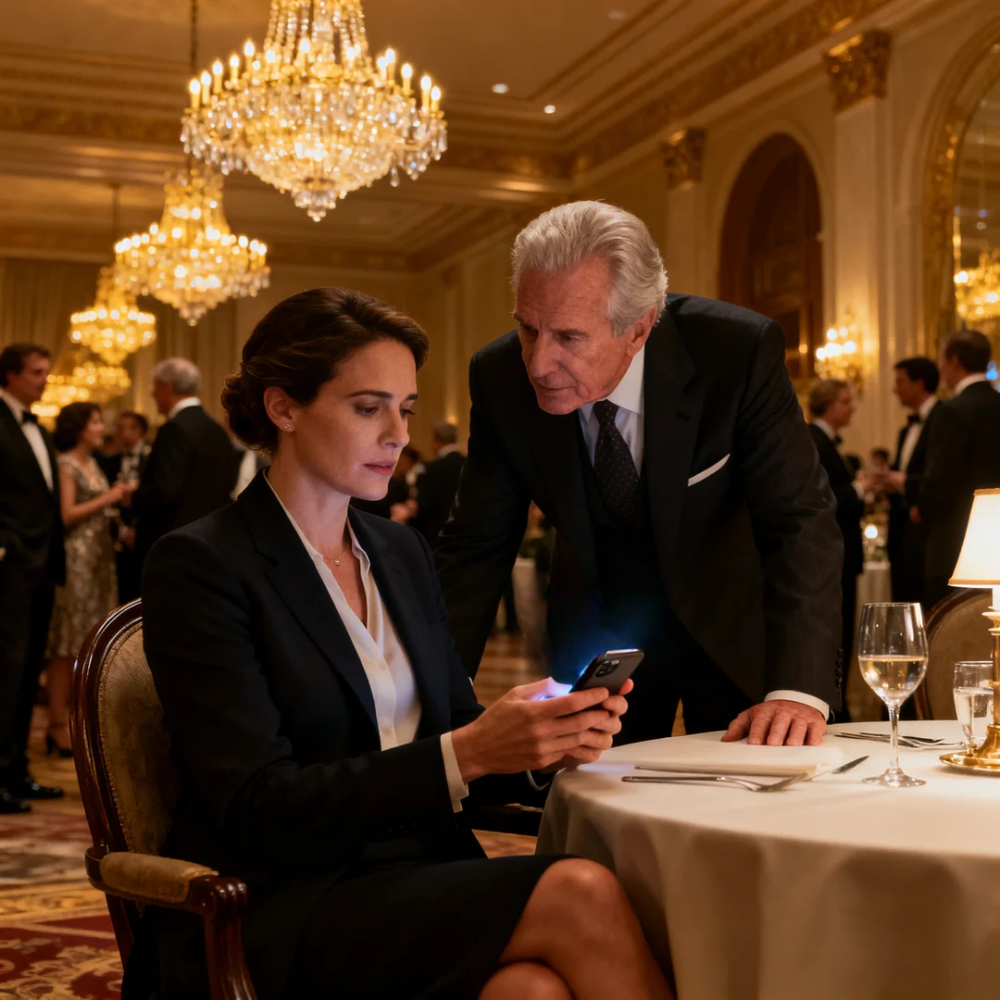 Arthur’s phone lit his palm. His thumbs moved once—deliberate—somewhere across the ballroom. I watched the effect ripple outward. A man near the stage checked his screen and went still, like his body had been turned off before his mind caught up.