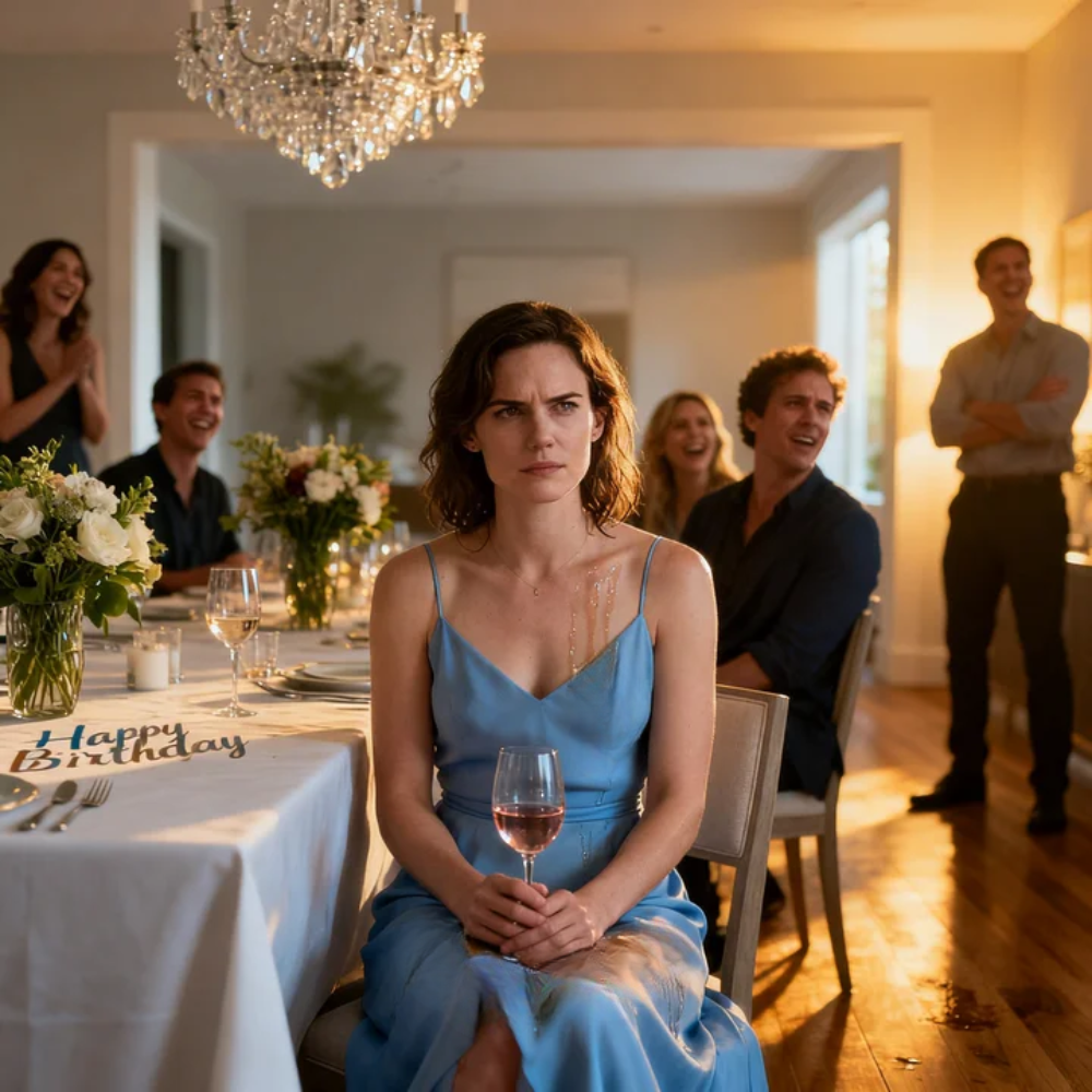 I looked down at my blouse. Red stain spreading across white silk. It felt almost symbolic. Too perfect. Too obvious. Like my whole role in that family had finally announced itself in a single image. Me, dressed nicely, hosting everybody, paying for the groceries, making the meal, setting the table, giving and giving and giving—and them deciding, right there in front of candles and birthday cake, that I was still safe to embarrass.
