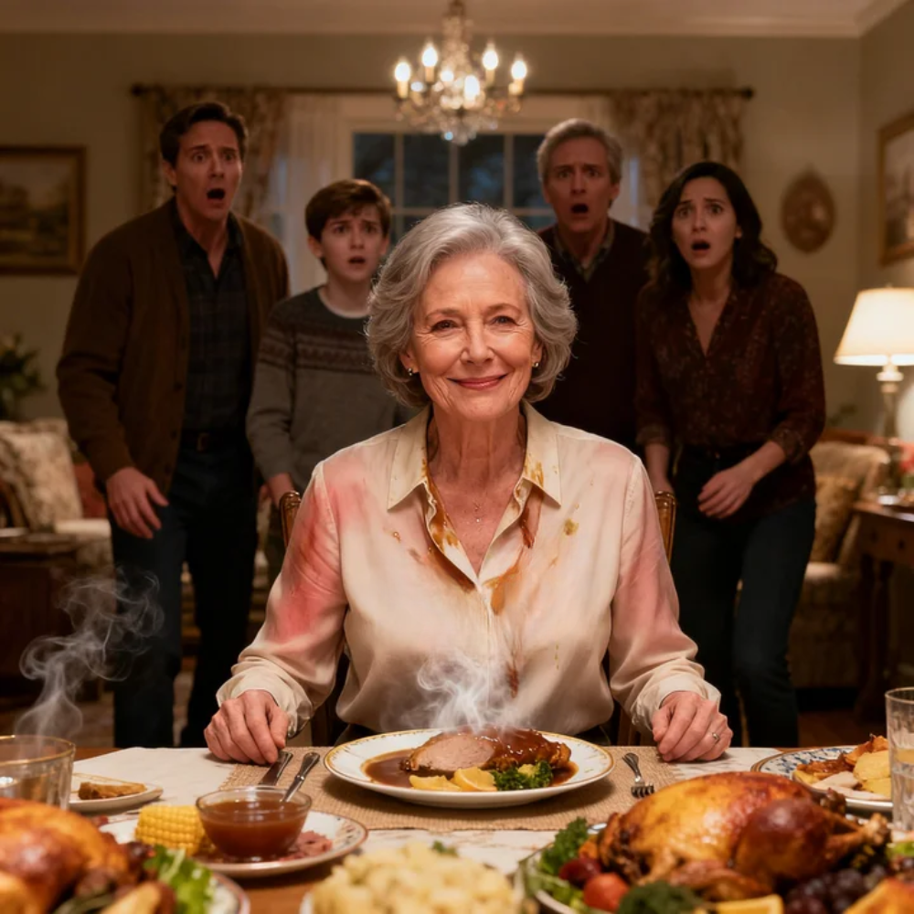 The gravy hit me before the sentence finished leaving my daughter’s mouth, a thick, brown wave that felt harmless for half a heartbeat—until the heat bit through cotton and into skin and I understood, in the most intimate way possible, how quickly a family dinner can turn into a crime scene.