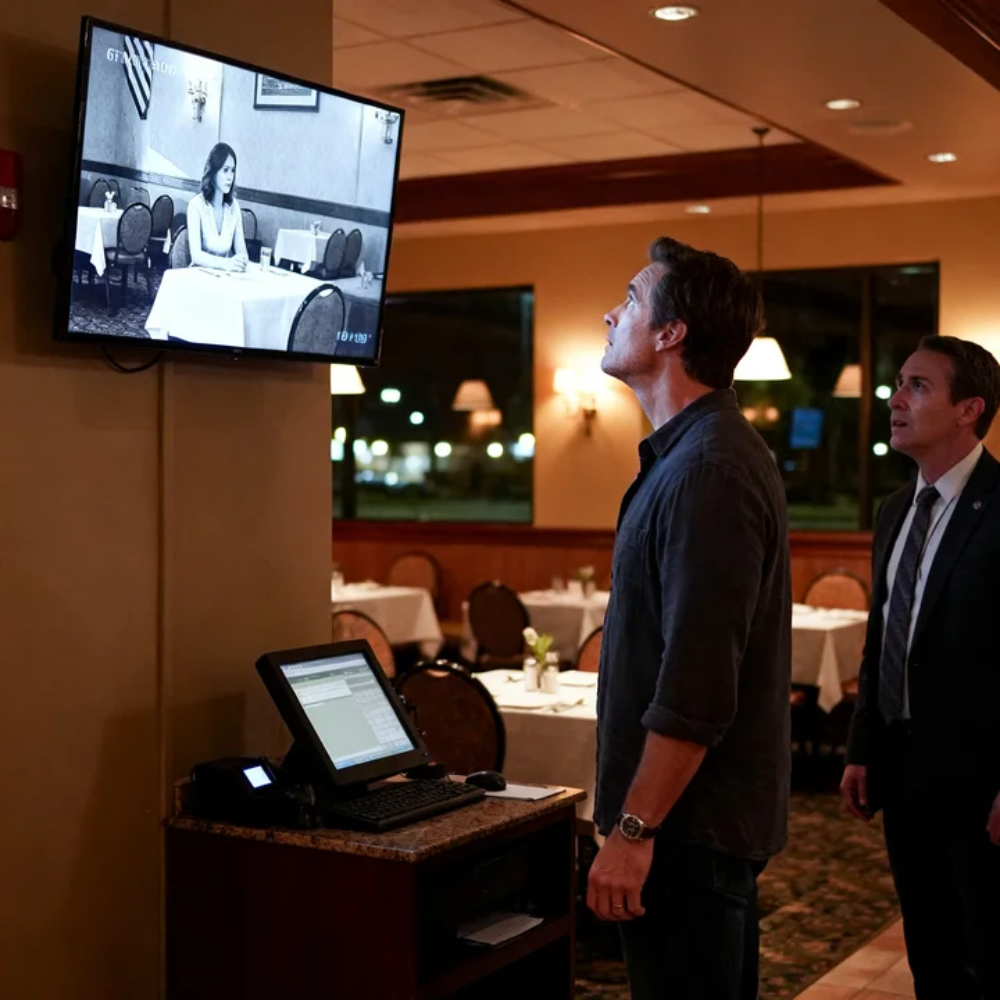 The manager’s hand trembled as he slid the tablet across the desk, and the screen lit the back office with a color so cold it made my skin prickle. Outside that thin door, dinner service was still alive—forks clicking against porcelain, someone laughing too loudly, the soft chime of stemware. The smell of seared meat and garlic butter drifted in like a cruel joke. But in here, under a flickering fluorescent bulb and a security camera poster that promised “SMILE, YOU’RE ON CAMERA,” time narrowed to one bright rectangle of video and the weight of a wedding ring on my finger.