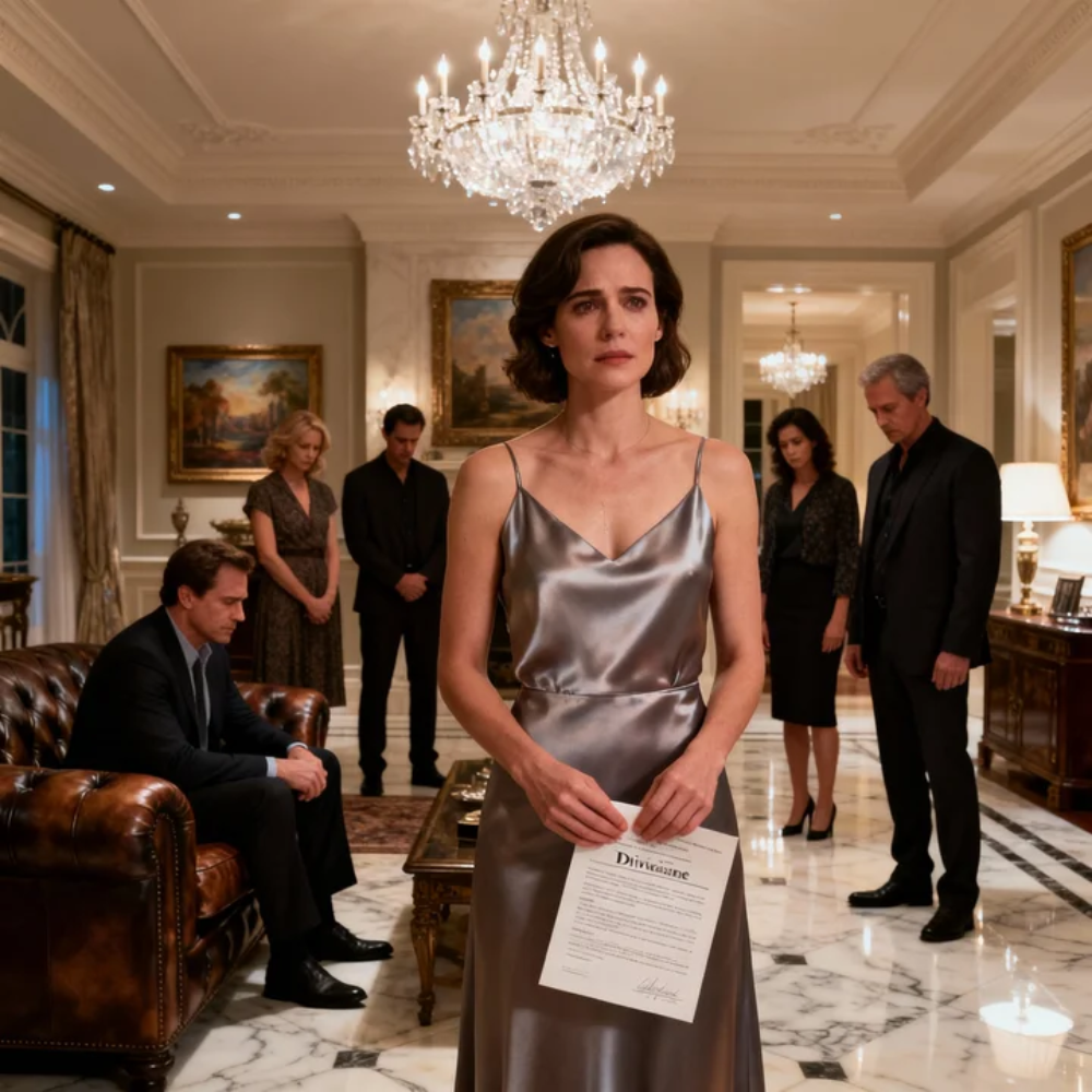 I sat there drenched in citrus and humiliation while the polished marble floor reflected the whole scene back at me: the expensive china, the silver cutlery, the smug faces, and my own ruined mascara streaking down like black ink spilled on a contract.
