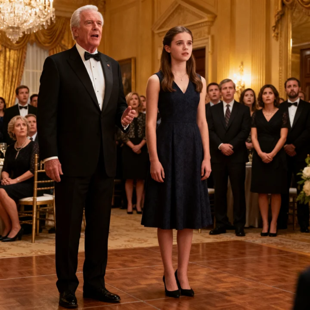 For one suspended second, the Plaza Ballroom—four chandeliers deep into Manhattan’s most expensive oxygen—stopped breathing. The flute slid from her fingers, spun once, and shattered at her feet. A bright scatter of glass winked under the stage lights like the room itself was laughing.
