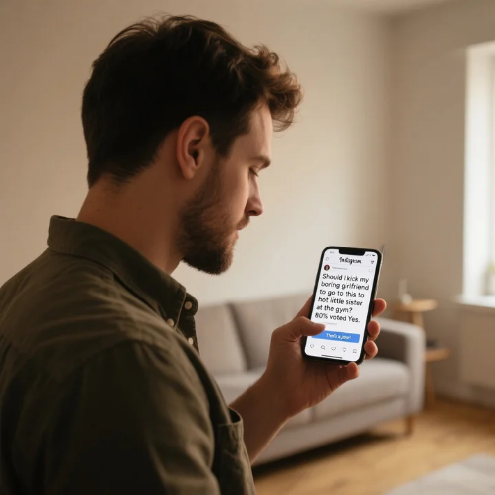 Long enough for dozens of his followers to vote on my relationship like it was some reality TV show they were judging from their couches. Long enough for people I’d never met to decide if my boyfriend should dump me. Long enough for an audience to join a conversation I didn’t know existed.