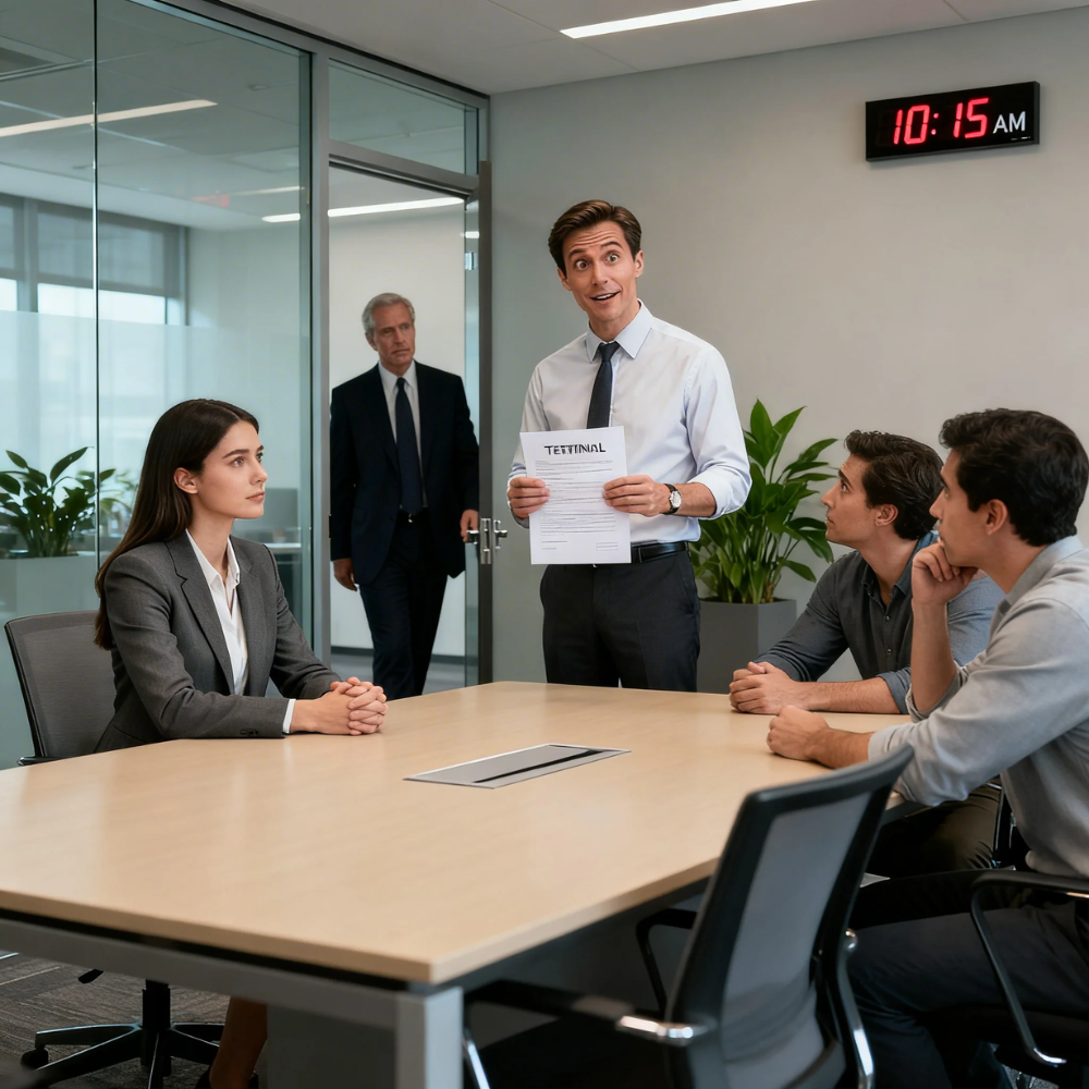 No warning. No performance review. No hint over coffee. Just a meeting request in a room with no windows.