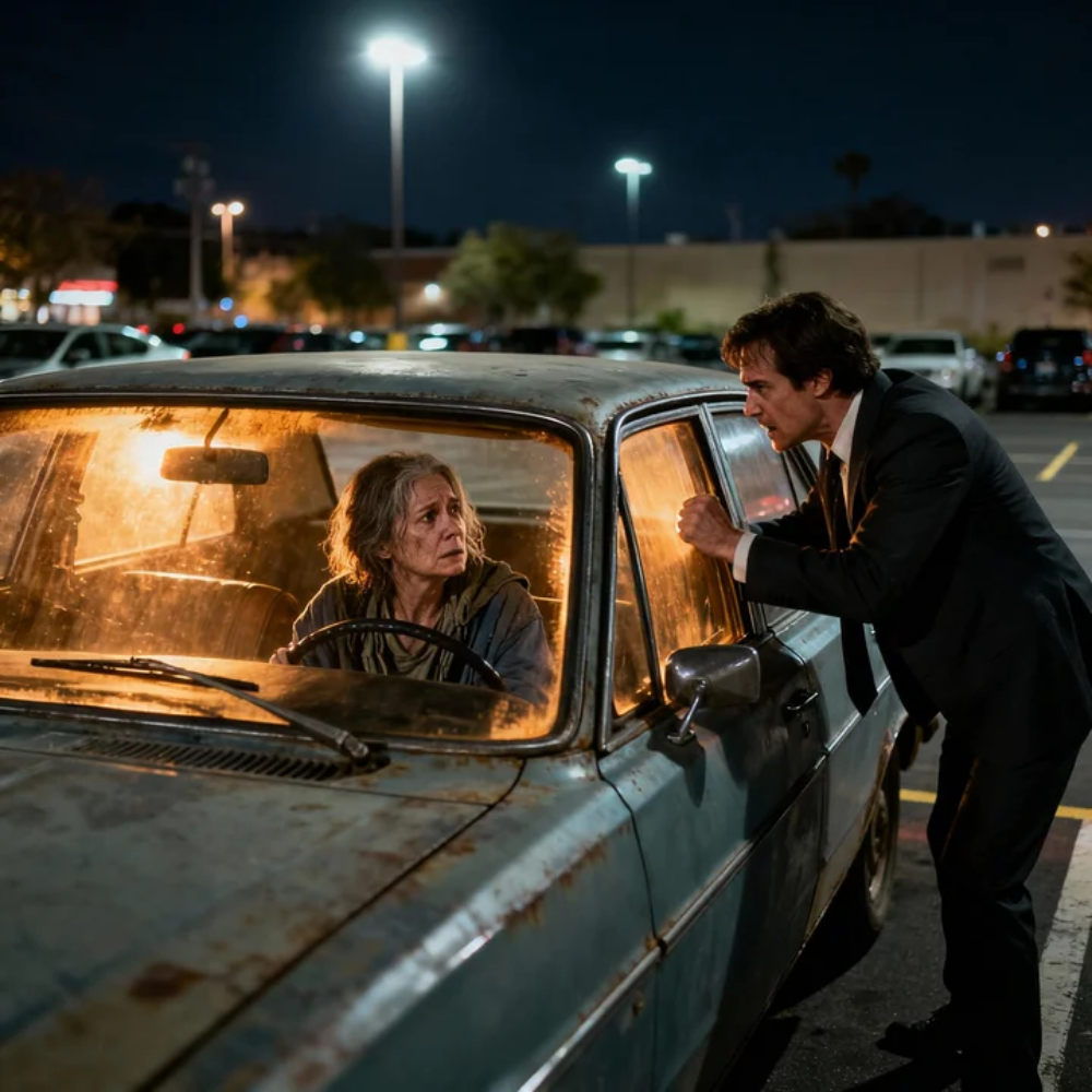 An older man stood outside in the dim parking lot light, maybe seventy, wearing an expensive wool coat despite the mild California evening. Silver hair combed perfectly. Italian shoes polished to a shine that didn’t belong in a Walmart lot. He looked like he’d stepped out of another world and wandered into Troy’s by mistake.