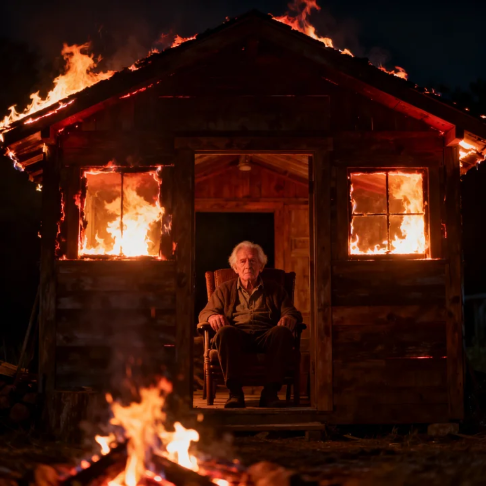 The cabin roared around me. The walls that had held birthdays, Christmases, and long blue summer evenings began to glow and spit and crack. Edward’s books blackened. Photographs curled. The old rug near the hearth shrank inward like something alive recoiling from pain. My throat tightened. Each breath came harder than the one before. The world narrowed into heat, noise, and the animal certainty that if I did not move now, I would be erased here.