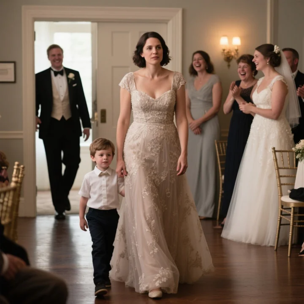 I walked out of the bedroom and there he was, standing on the sagging beige couch like it was a stage, in the little navy clearance-rack suit I’d found at Target with a red clearance sticker half-peeling off the hanger. The pants were a touch long, the jacket a touch big, but his brown hair was combed, his face freshly scrubbed, and his eyes glowed like somebody had told him tonight was magic.