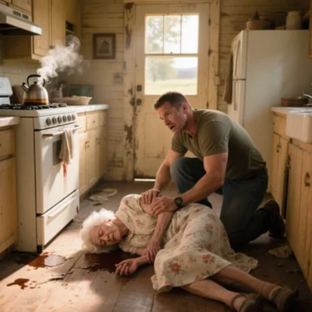 I grabbed a dish towel off the stove handle. It smelled like pancakes and detergent. I pressed it hard into the wounds in her chest, leaning my weight on it. My hands shook. I’d slapped pressure dressings onto three continents; I’d watched teammates bleed out on dusty roads in Afghanistan, on rusty decks in the Gulf. I’d never done it on my mother’s kitchen floor, under a framed “God Bless Texas” sign she’d bought at a flea market.