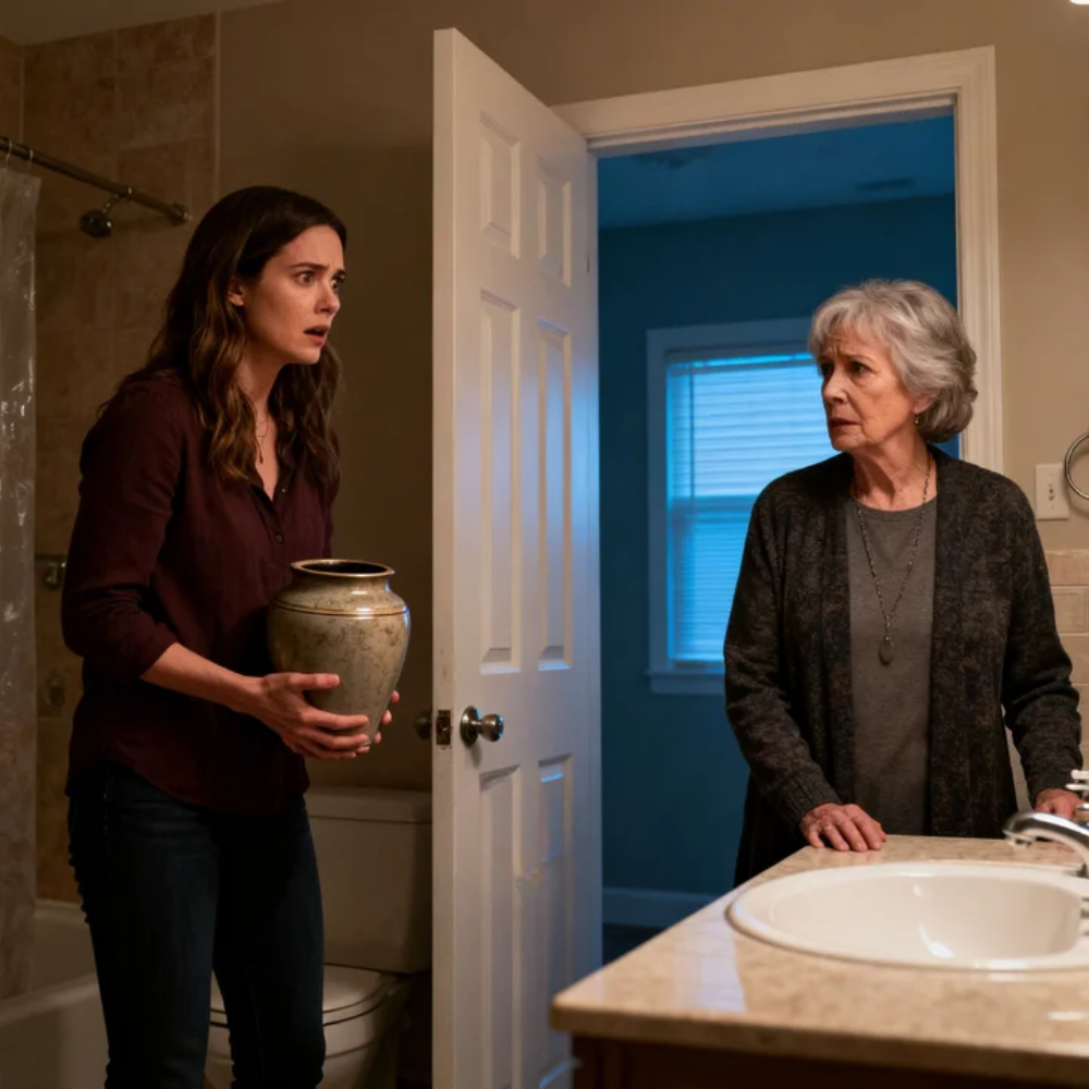 I lowered my phone just enough to make sure the video was still recording. It was. Her face. The broken urn. The toilet. Everything.