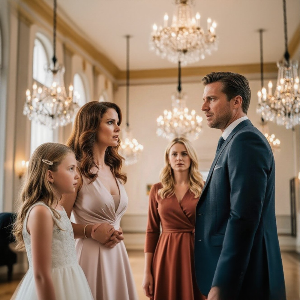 The child’s hair was dark, glossy under the chandelier light, pulled back with a pale bow that made her eyes stand out even more. Those eyes were wide and watchful, scanning the crowd with the same careful curiosity he remembered in Hannah the first time he had taken her to a corporate holiday party.