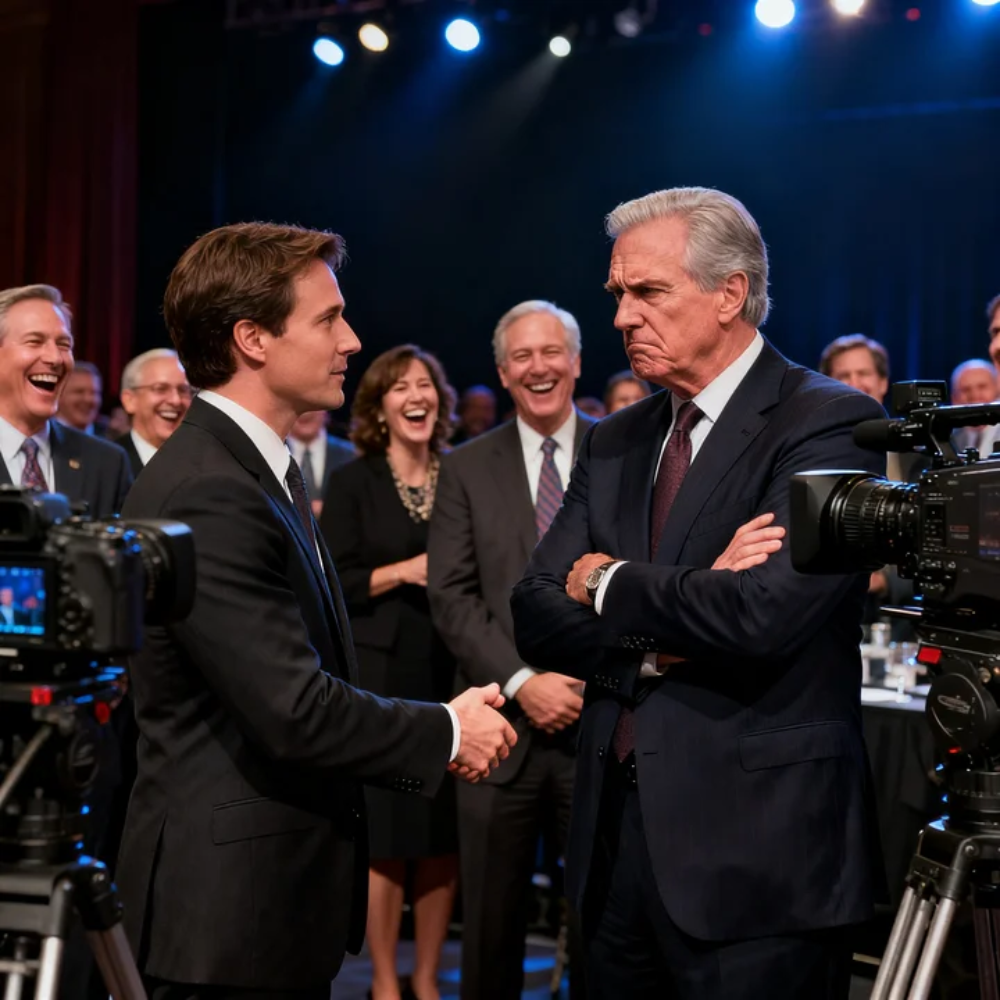 Before the new CEO could react, the chairman turned his head, leaned slightly toward his lapel mic, and let out a small, practiced scoff—the kind of sound that reads as charming if you’re powerful and cruel if you’re not.