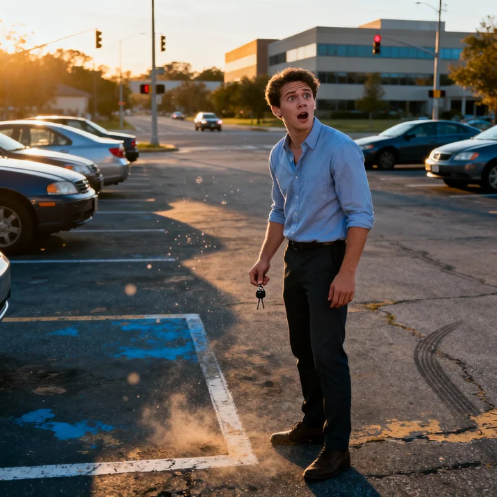 My fingers felt like ice as I unlocked my phone again. I hovered over the keypad. The wind kept tugging at my hair, pushing it across my face like a curtain, but I didn’t brush it away. I just stood there staring at the place where my car used to be, as if the asphalt might suddenly admit it was a misunderstanding and return what had been taken.