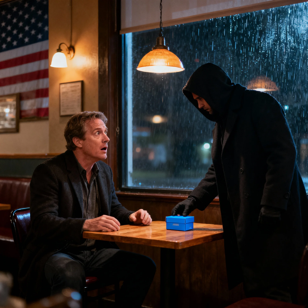The box stayed where he’d left it, a perfect blue square against the scratched wood, absurdly elegant among paper napkins and half-empty water glasses. I stared at it and felt something primal in my chest: the instinct that tells you to snatch danger off the table before anyone else notices it.