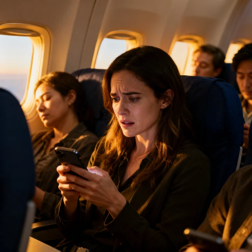 The cabin doors had already sealed, the flight attendants were doing their final checks, and the airplane had begun that slow, heavy crawl away from the gate when my phone lit up like something was dying in my hand.