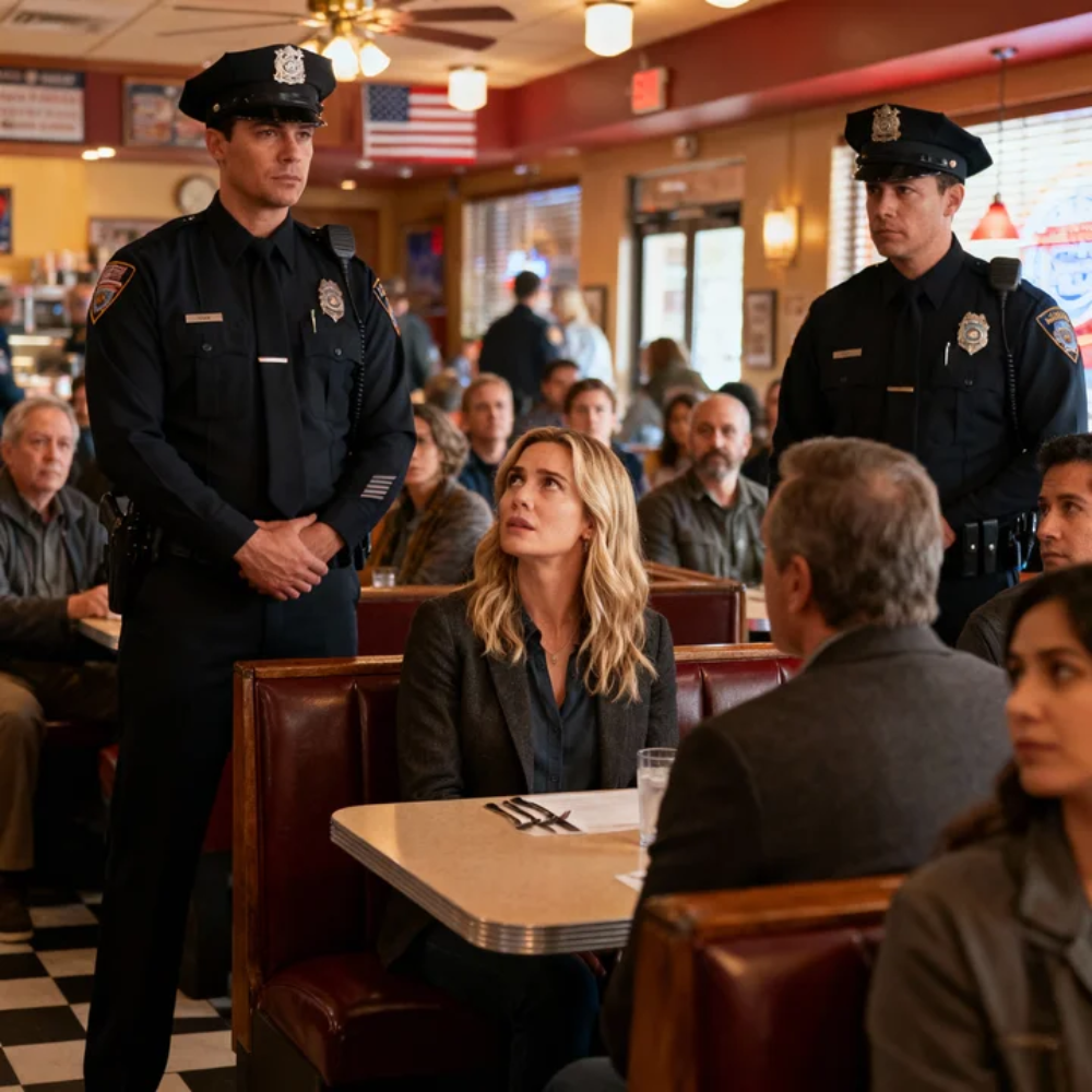The first officer nodded once, glanced down at his screen, then back at me. “We got a report,” he said. “Someone claims you might be a threat.”