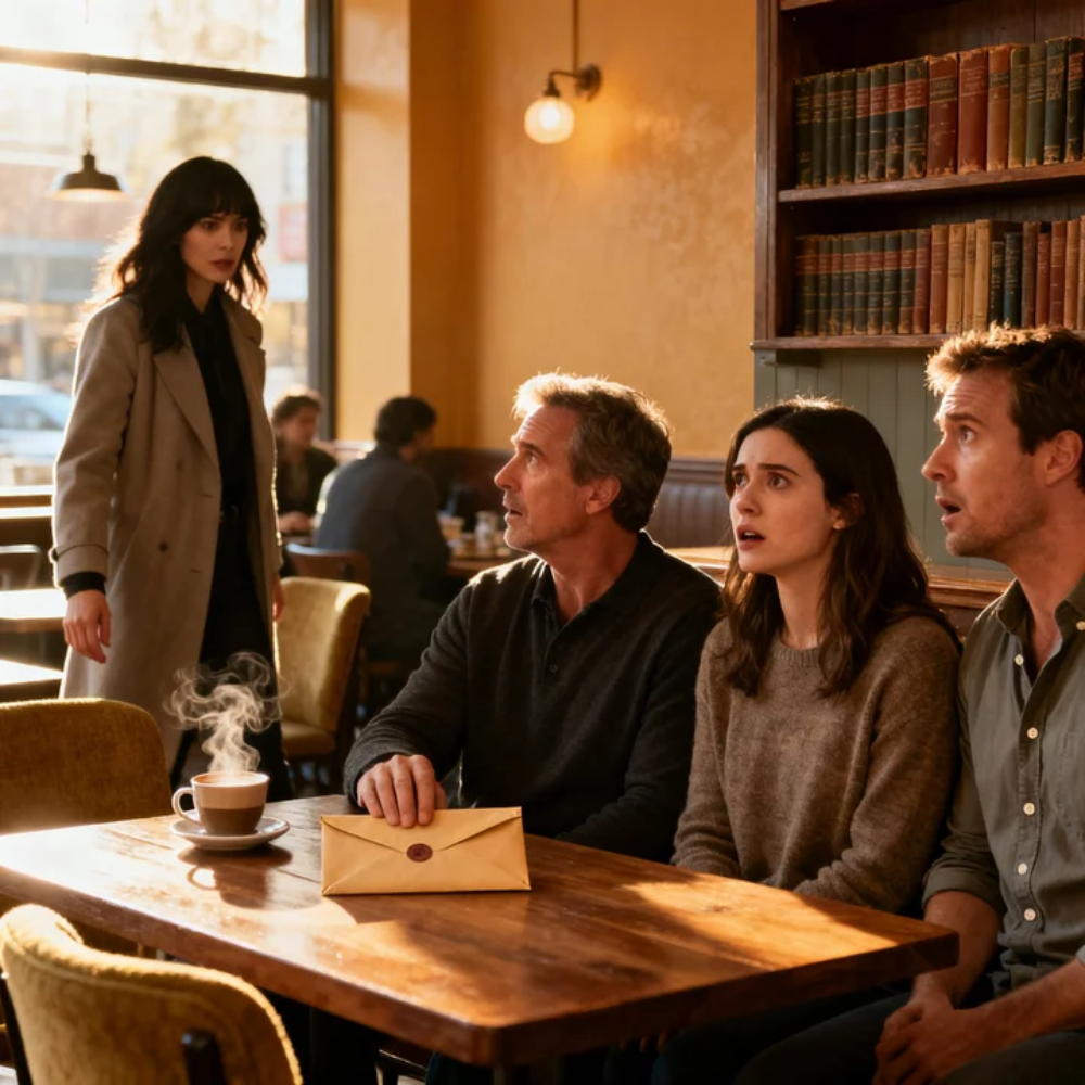 The envelope slid across the café table so quietly it almost felt like a trick of the light, a pale rectangle moving through the steam rising off my coffee, and even before I touched it, even before I saw the unbroken seal or the slight tremble in the woman’s hand, I had the strange, sick certainty that whatever sat inside that paper shell was about to cut my life cleanly in two.