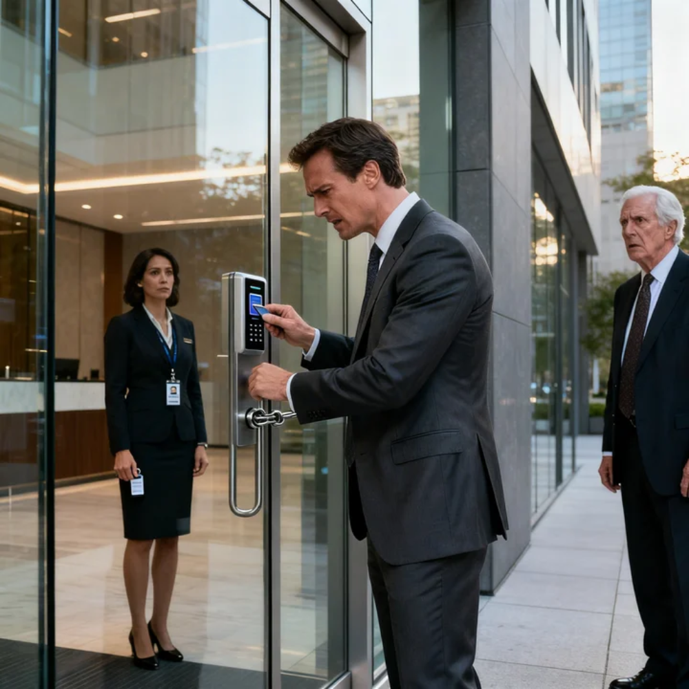 “Rick,” she said, “it’s chaos. No one can get in. The badge readers are just… beeping. Brandon is in the parking lot screaming at his phone like the building personally betrayed him.”