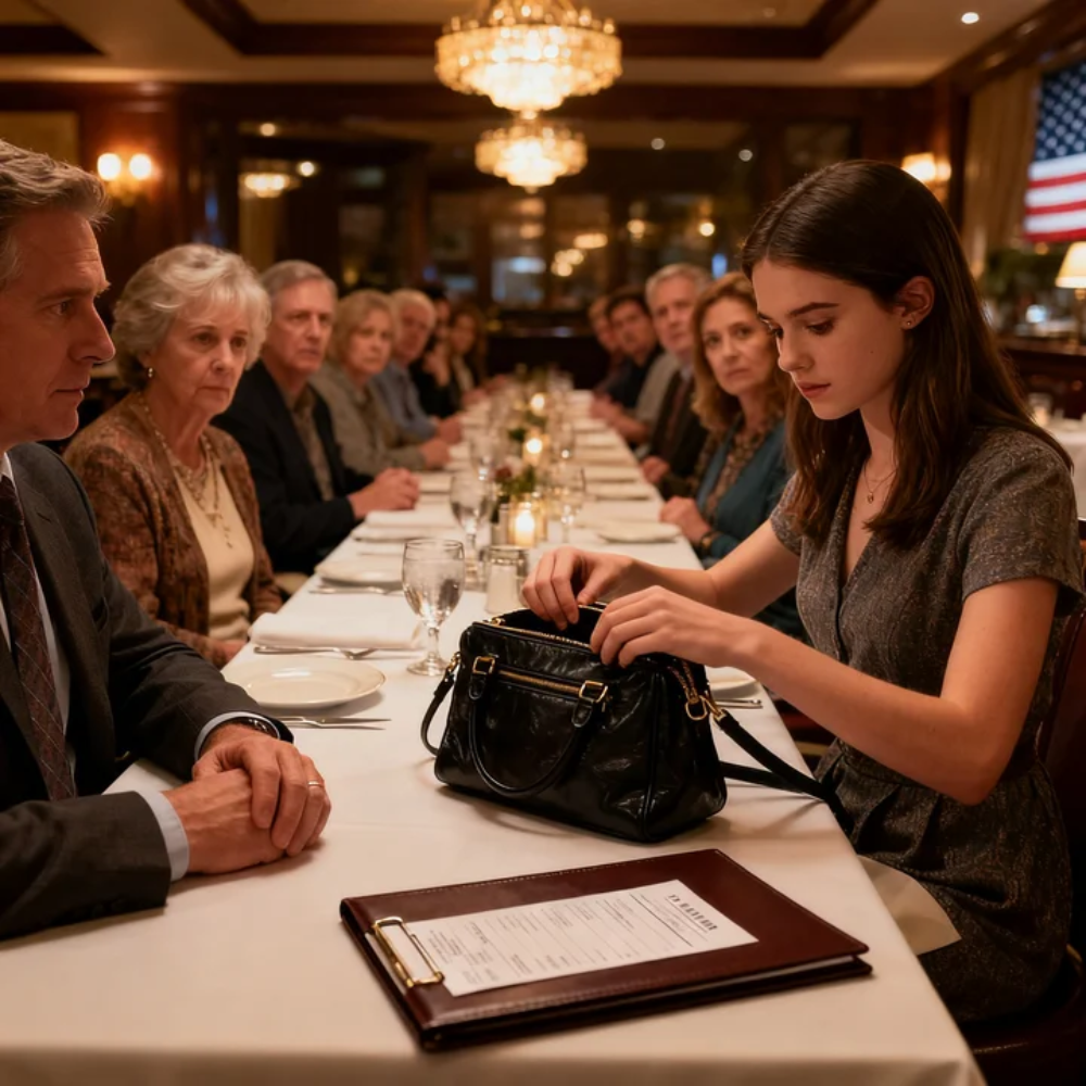 Conversation continued, technically. Someone asked about a ski trip. Someone laughed about a story from “back when.” Forks scraped. Glasses clinked. But the room’s attention had pivoted. Every sentence felt like it was happening in the shadow of that black leather folder.