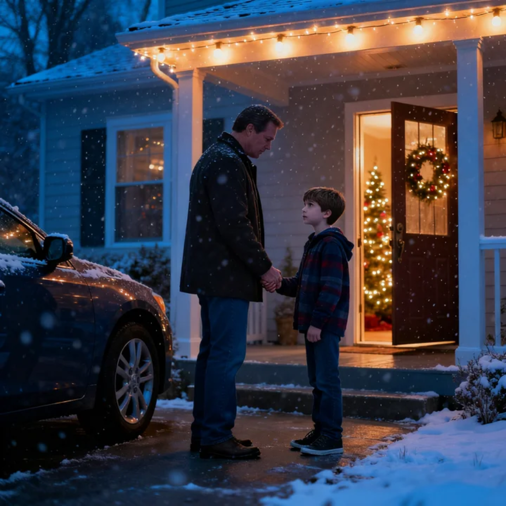 The kind of cold that doesn’t sit on your skin—it crawls into your chest and stays there, years later, long after the tree is gone and the lights have been boxed up. I still feel it if I close my eyes for long enough: the porch light buzzing over my parents’ front door, the wreath hanging too straight, the brittle wind pushing snow across the driveway in thin, whispering ribbons.