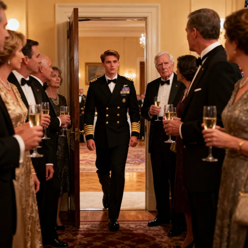 Admiral Robert Green stood beneath a wall of flags and polished brass, the kind of man Washington, D.C. loved to photograph—square shoulders, controlled smile, medals catching the chandelier light like small, obedient suns. Beside him, my stepsister Elise looked luminous in immaculate dress whites, her posture rehearsed, her grin trained to hold steady under applause the way a ship holds steady in a parade harbor.