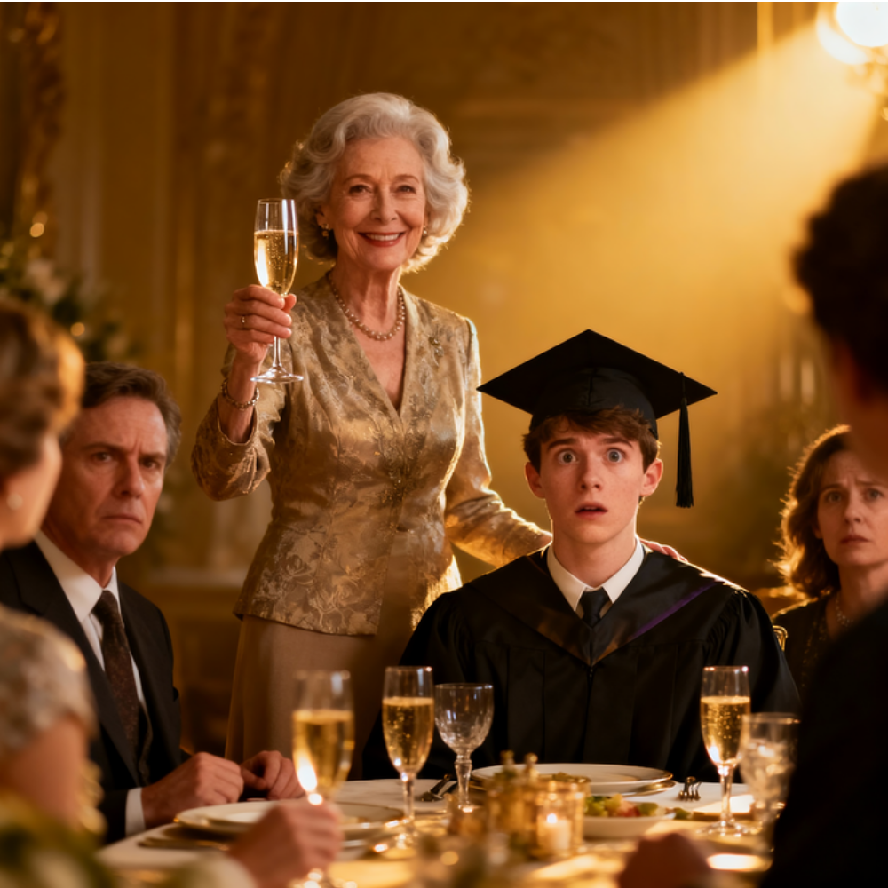I was thinking about the kind of adulthood that feels less like living and more like constantly shoving bills back into a drawer you can’t close when my grandmother, Evelyn Carter, lifted her glass and stood.