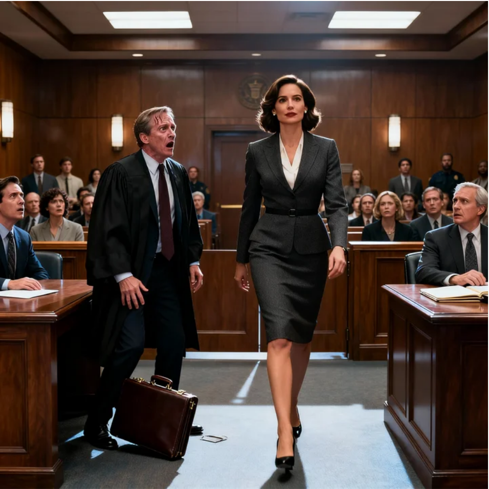 When Judge Caroline Mercer entered, everyone stood in unison. The bailiff’s voice echoed. The judge’s robe swayed like a curtain closing. The courtroom settled into that tense quiet that feels like a held breath.