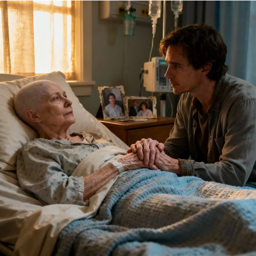 It startled me. She hadn’t moved much in weeks. Pain had reduced her to careful inches. But that night, she reached out and gripped my wrist—tight, too tight for someone whose body had been fading. Her fingers were cold, but the strength in them was real. Urgent.