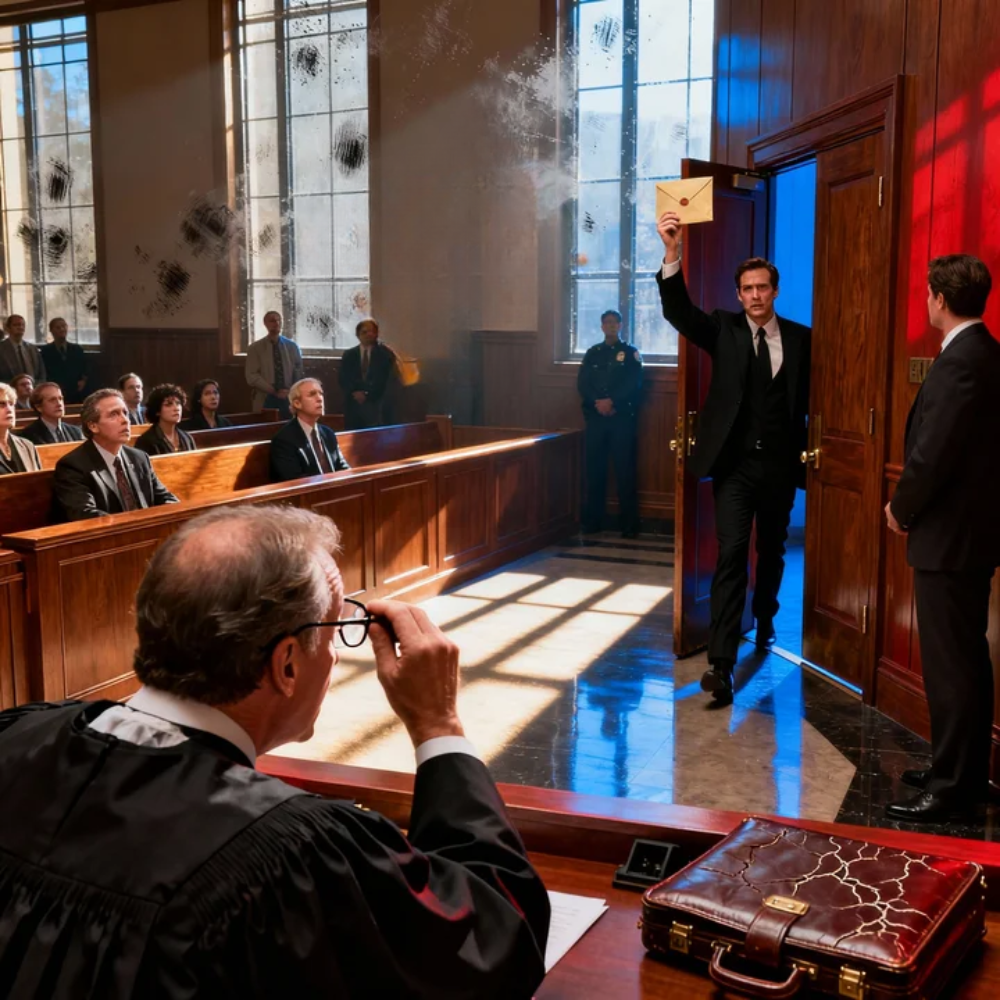 The judge blinked, reached for his glasses again, and watched the envelope like it didn’t belong in his courtroom.