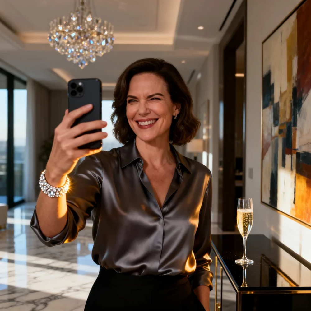 I picked up the phone again and watched the end of her video. The angle caught her hair—perfectly styled, the kind of blowout that takes time. The bracelet glittered again as she lifted her glass.
