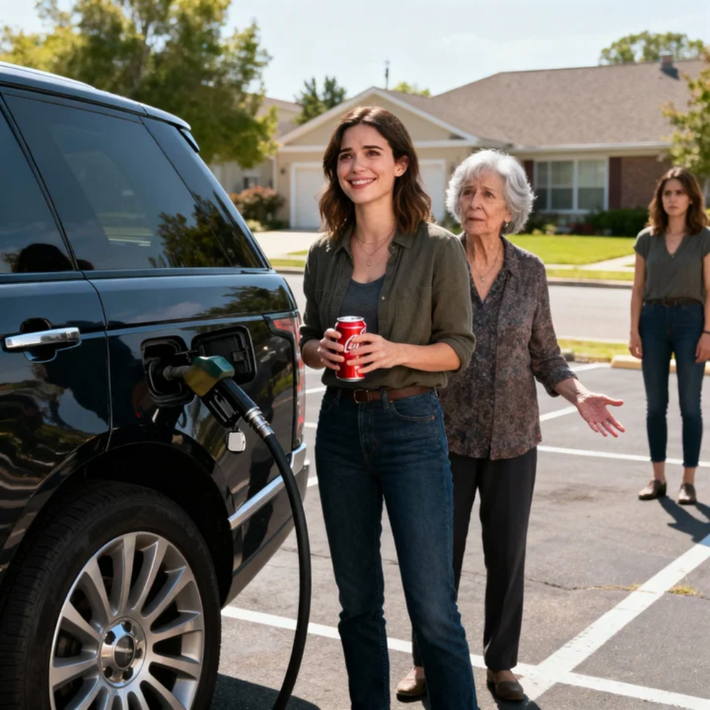 “Oh,” she said, feigning surprise like she’d been caught dropping a napkin, not sabotaging a vehicle. She lifted the bottle, shaking it slightly so the brown liquid sloshed and fizzed. “Sorry. I accidentally poured soda into the gas tank of your luxury SUV.”