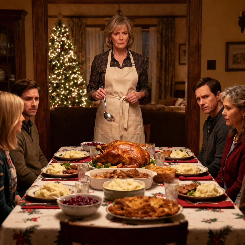 No one shouted. No dish shattered. No one gasped or put a hand dramatically to a throat. It was smaller than that. More exact. A stillness entered the room as if the air itself had heard and gone cautious. I stood with the serving spoon still in my hand, staring at the green beans while the steam rose and disappeared.