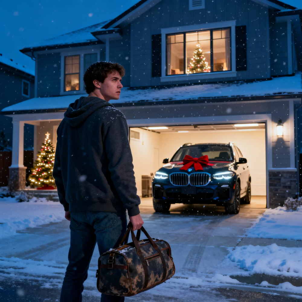 My sister stood by the tree, barefoot on hardwood floors my father refinished himself years ago, holding a small black object in her palm like it was a holy relic. The BMW key fob caught the light and flashed silver. She didn’t even have to say anything. The room did it for her.