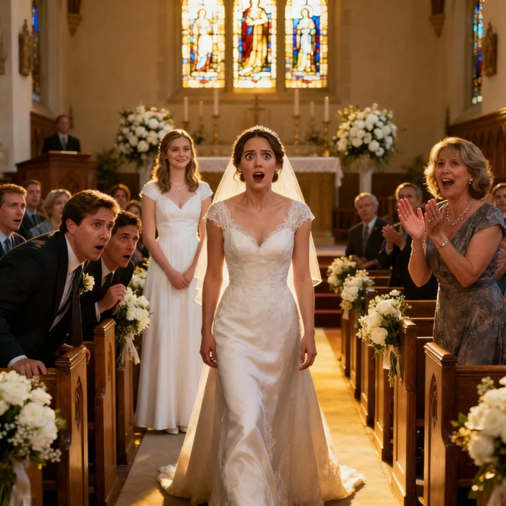 I stood frozen at the back of the aisle, gripping my bouquet so tightly my fingers went numb. The stems pressed into my palm. Somewhere in the room, a candle flame flickered.