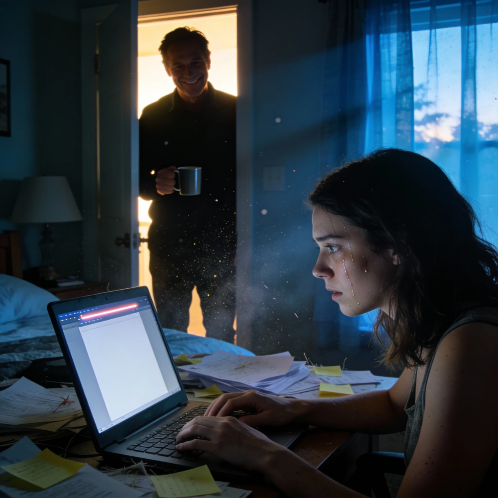 A shadow moved in the hall. Then Mom appeared beside him, as if she’d been waiting just out of sight for her cue. She wore her “concerned” face—lips pursed, eyebrows pinched—like a mask she’d perfected over decades for relatives and strangers. The face that said I’m only being harsh because I love you.