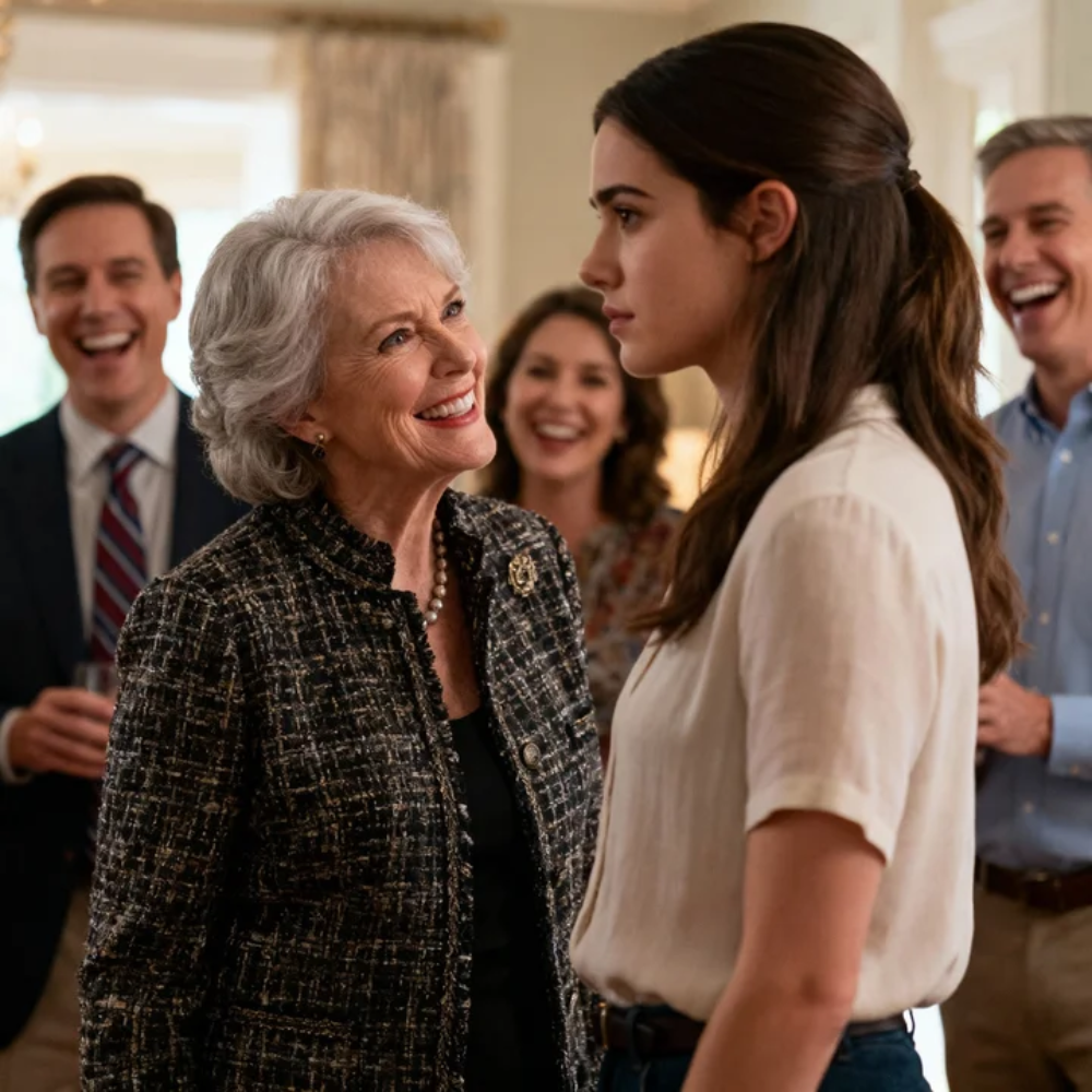 My cousin Ethan—freshly minted partner at my father’s firm—held court near the bar. His suit fit like it had been painted onto him, his smile as sweet as syrup and just as sticky. He laughed too loudly at jokes that weren’t funny and placed his hand on people’s shoulders like he owned them.