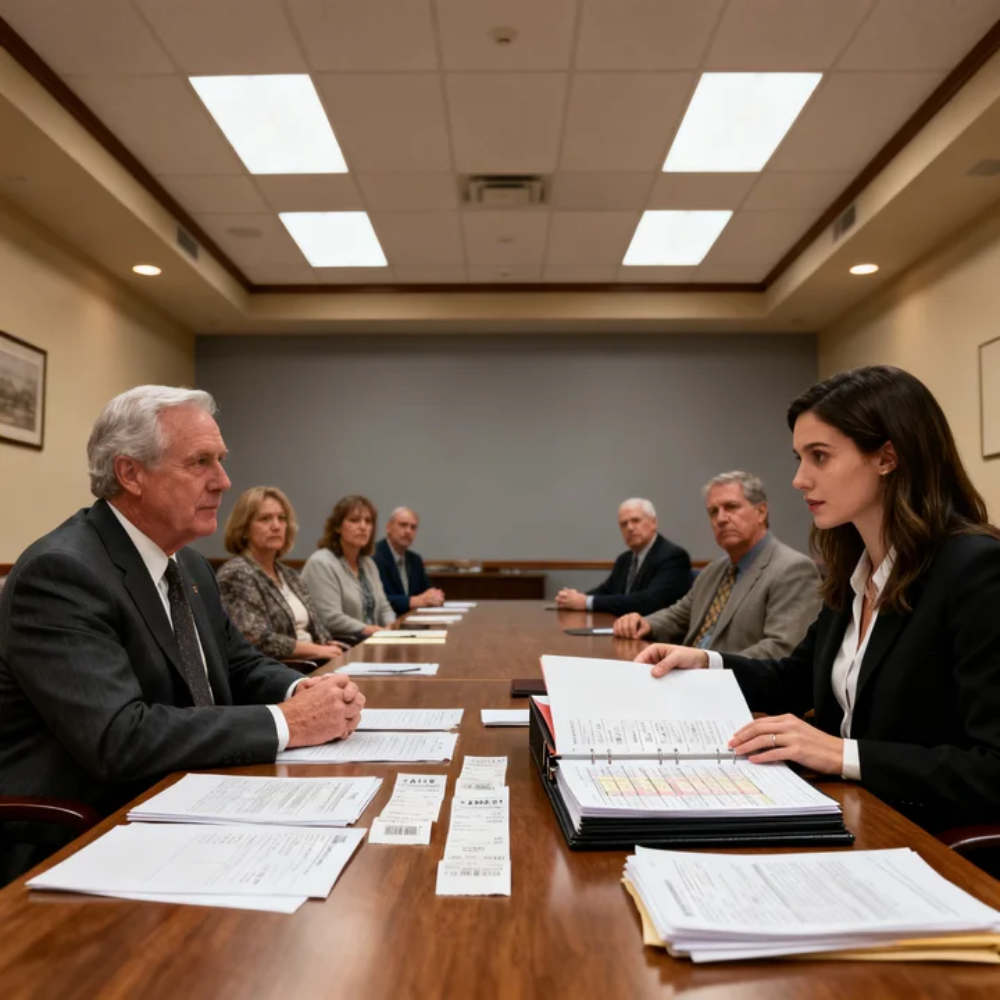 The fluorescent lights in the HOA meeting room buzzed like trapped insects over my father’s head as he opened a manila folder and told thirty-one neighbors that I had abandoned my own home nine years ago.