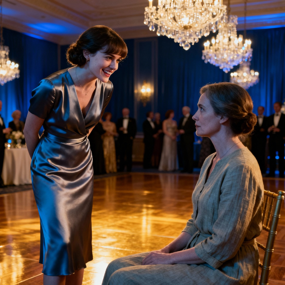 She swirled her champagne and looked at me like I was a slightly confusing piece of décor my aunt had insisted on placing near the ice swan.